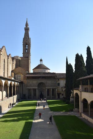 (Foto © Marco Badiani) - Il chiostro di Santa Croce, in cui è visibile sul fondo il loggiato della Cappella Pazzi